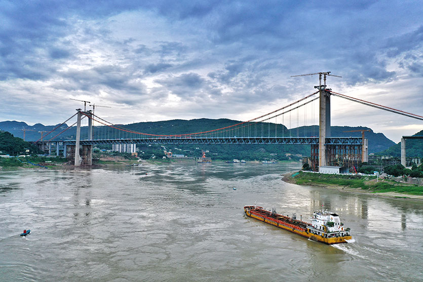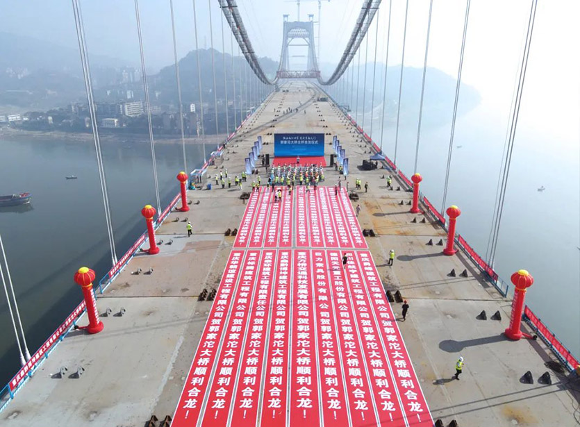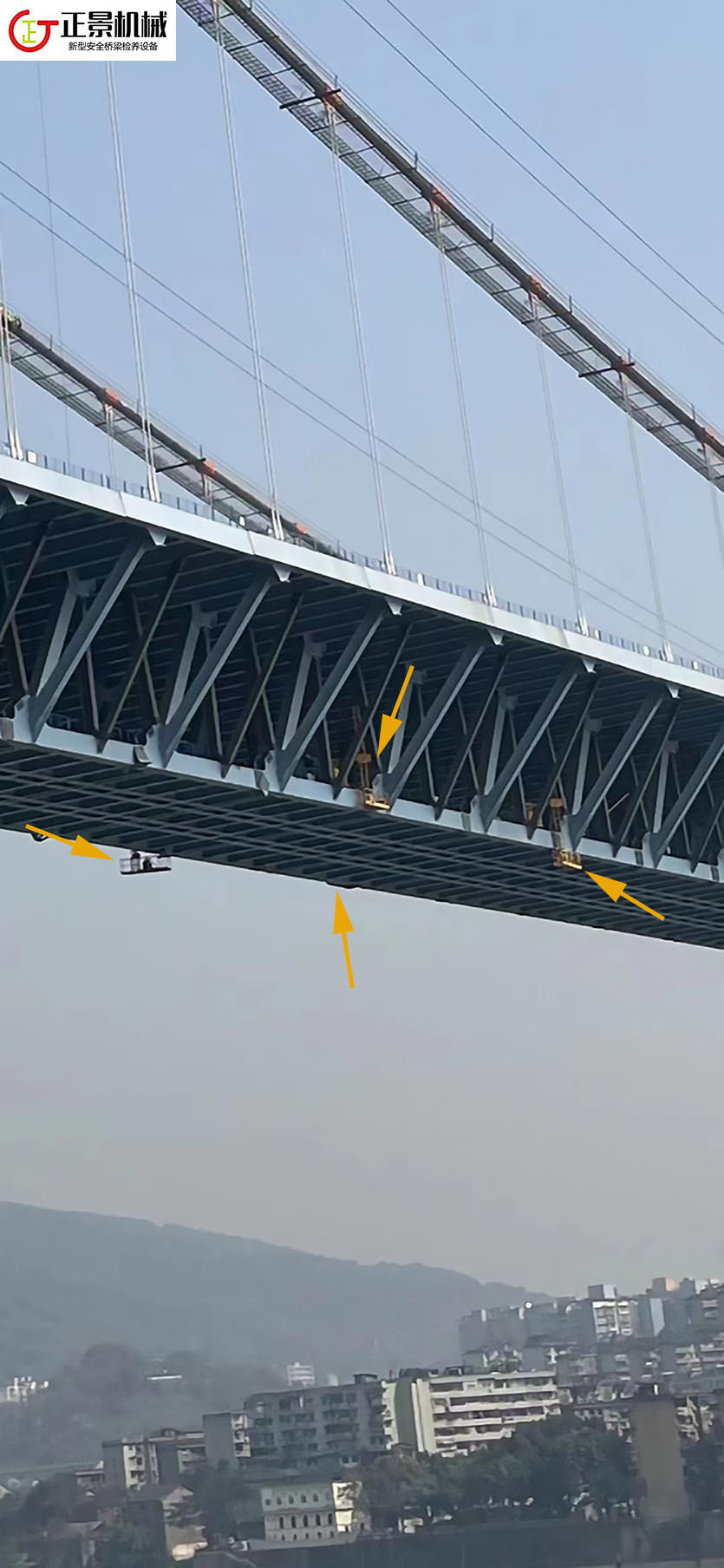 Posted on 2022年3月16日 by zhengjing in 公司新聞Tagged 單邊橋梁檢測車二代, 橋梁側面施工設備, 橋梁施工平臺 國內最大跨度公軌兩用懸索橋——重慶郭家沱長江大橋成功合龍 3月15日上午,隨著最后一塊鋼桁梁的成功吊裝,國內最大跨度公軌兩用懸索橋——郭家沱長江大橋成功合龍,預計今年內將具備通車條件。由正景機械研制的四臺橋上單邊施工車有幸參與這一歷史時刻。